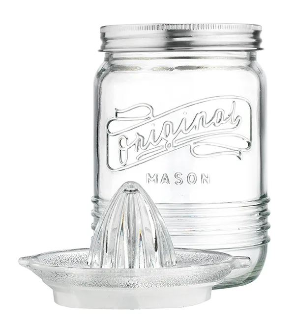 • 2-piece set includes glass jar and glass juicer top